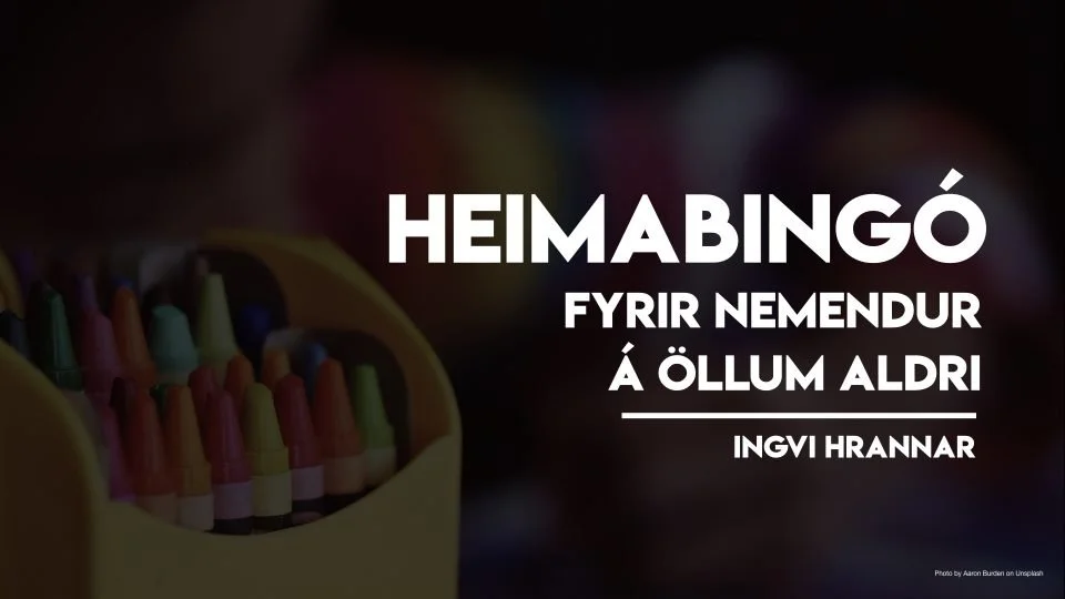Það getur verið mjög sniðugt að láta nemendur vinna sitt eigið bingó fyrir vikuna. Hér er skjal sem kennarar geta tekið og breytt og bætt eins og þeir vilja til að henta sínum árgangi.Endilega hafið verkefnin opin (lár þröskuldur en hátt þak fyrir nemendur) enda ólíkar forsendur barna og foreldra þeirra á þessum tímum.Svo er tilvalið að prenta út eða senda heim í gegnum Seesaw.Hér er grunnskjalið.