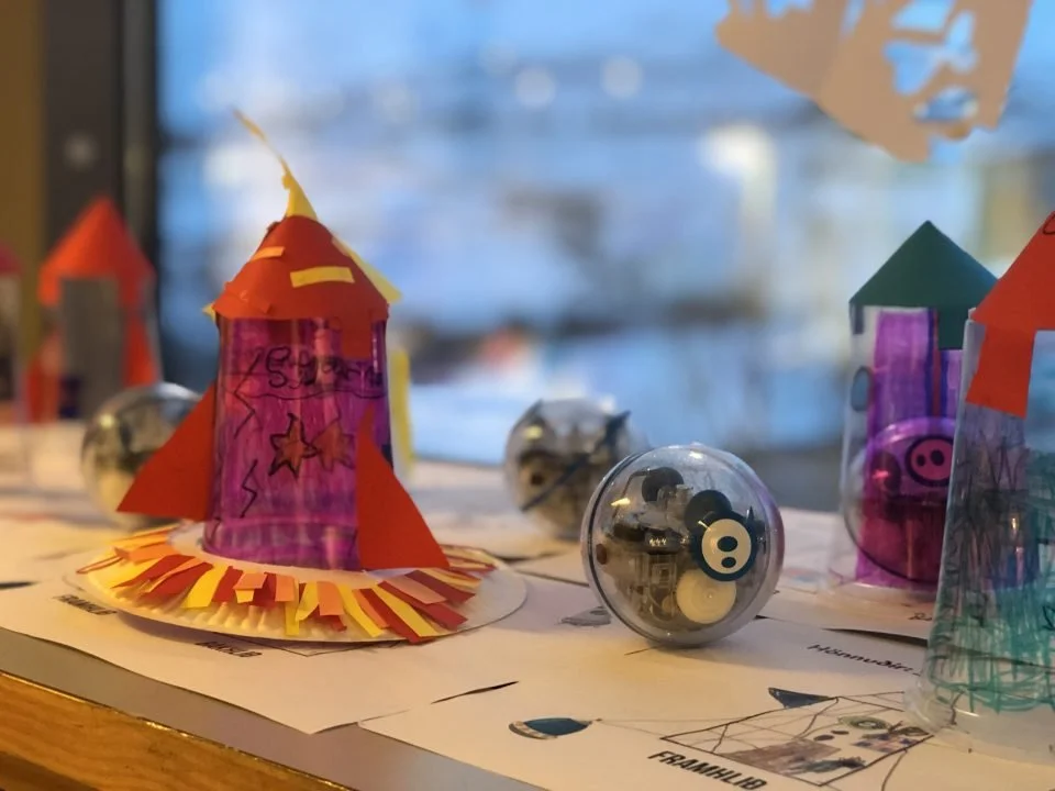 Fyrsta verkefnið okkar miðaði svo að því að nemendur ynnu saman að hönnun á geimskipi sem ferðaðist svo á milli reikistjarna sólkerfisins okkar (þar sem Sphero vélmennið virkar sem vél).Þarna var mikilvægt að nemendur skipuleggðu hönnun sína áður en hafist væri handa.Hér getið þið fengið blaðið sem nemendur unnu með: Geimfar_SpheroÓhætt er að segja að geimskip nemenda hafi verið mjög skapandi og vel unnin. Þau hugsuðu um þyngd, útlit og komust að samkomulagi því þetta var unnið í 2ja manna hópum.